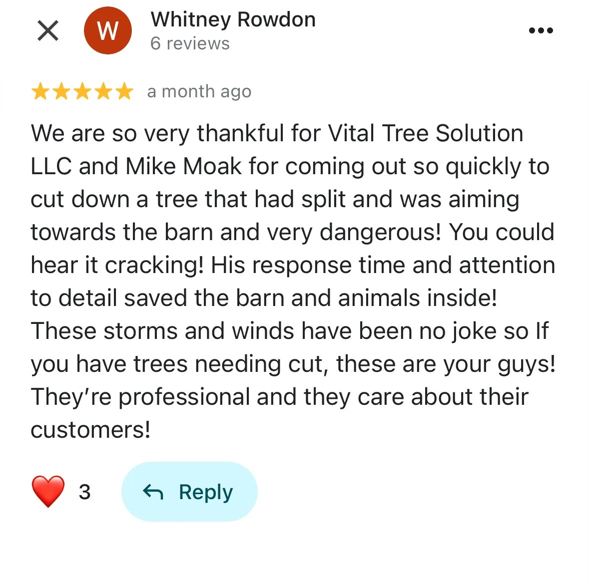 Power through nature's challenges with Vital Tree Solutions dedicated team of licensed Arborists with 10+ years experience to ensure Safty and maximum efficiency for all of your land management needs!